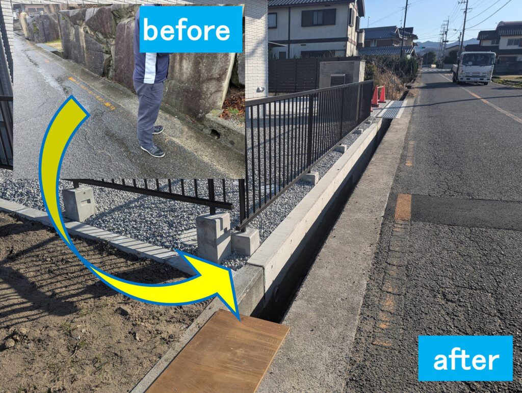 市道沿いの側溝にグレーイング蓋を設置しました。